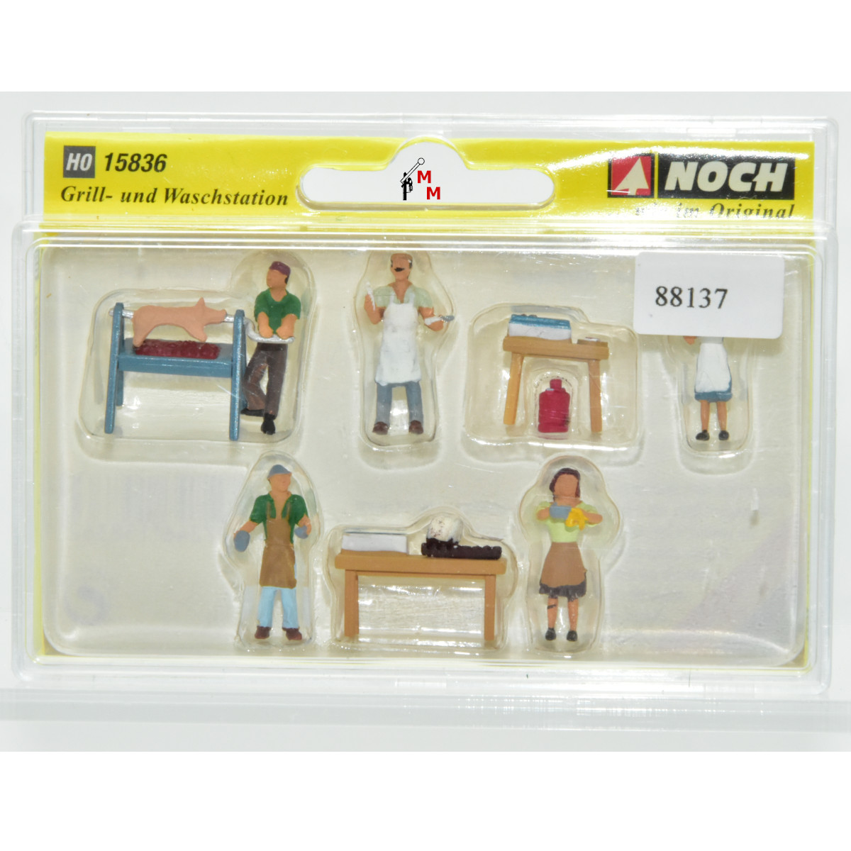 Hierbei handelt es sich um einen Zubehör-Set zum Thema „Grill- und Waschstation“. Dieses Set enthält sieben sorgfältig handbemalte typische Figuren und Ausstattungsgegenstände für eine Grill- und Spülstation z. B. in einem Biergarten. So gibt es eine Figur, die am Grill ein Spanferkel dreht, eine Servicekraft, die Essen serviert oder zwei Figuren, die Gläser spülen. Besonders zur Gestaltung von Festen und Kirmes ist dieses Figuren-Set geeignet. Farbabweichungen vom Katalogbild sind möglich, siehe Foto. Es handelt sich hier um gebrauchte Ware, es gilt die verkürzte Gewährleistung von einem Jahr. Achtung! Nur für Erwachsene geeignet.