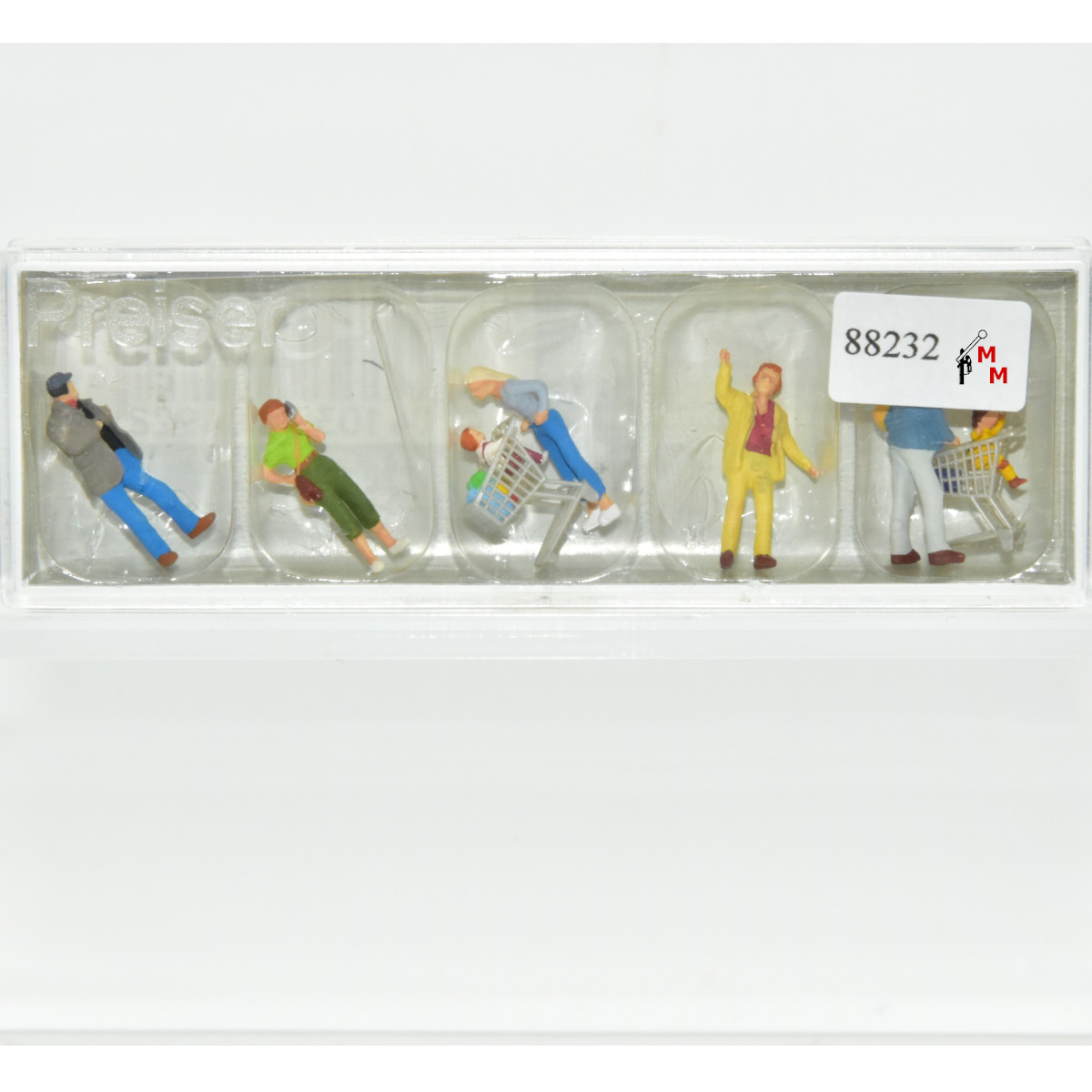Hierbei handelt es sich um sechs unterschiedliche Figuren zum Thema „Beim Einkaufen“. Hinzu kommen noch zwei Einkaufswagen, mit Kleinkindern im dafür vorgesehenen Sitz. Miniaturfiguren in detailreicher Bemalung aus der Exklusivserie. Die Figuren sind handbemalt. Farbabweichungen vom Katalogbild sind möglich, siehe Foto. Eine Figur wurde ausgetauscht. Es handelt sich hier um gebrauchte Ware, es gilt die verkürzte Gewährleistung von einem Jahr. Achtung! Nur für Erwachsene geeignet.