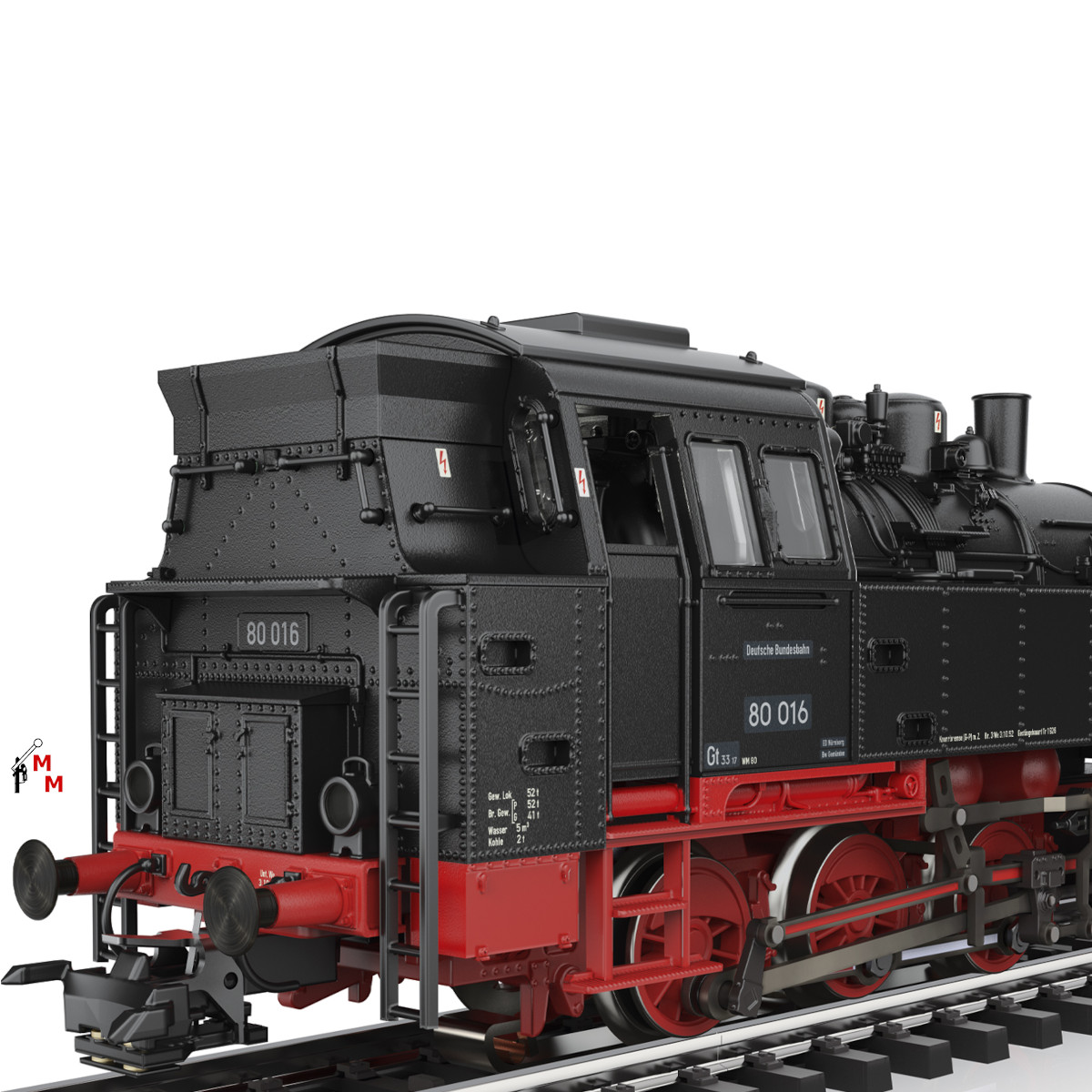 Hierbei handelt es sich um eine 3-achsige Tenderlokomotive in Metallausführung „Vom Erz zum Stahl“ der Baureihe 80 der Deutschen Bundesbahn in schwarzer Farbgebung mit rotem Fahrgestell. Ausführung mit drei Kesselaufbauten, Läutewerk und Turbodynamo links, Rauchkammertüre ohne Zentralverschluss mit Nummernschild mittig.Helle Aufschriften mit der Betriebsnummer 80 016. Betriebszustand um 1953 der Epoche III. Die Dampflokomotive ist mit einem geregelten Hochleistungsantrieb mit Schwungmasse im Kessel. drei Achsen angetrieben. Haftreifen. Modell weiterhin mit einem mfx+-Decoder für umfangreiche Sound- und Sonderfunktionen ausgestattet. Auch lassen sich im Spielbetrieb verschiedene Modi (Halbprofi-, Profi- und Spezialisten-Modus) auslösen. Simulierter Führerstand im Display der Central Station 2 und 3 mit der Möglichkeit der Steuerung des Modells im Führerstand-Modus mittels Touchscreen der Central Station 2 und 3. So können realistische Fahreigenschaften abgebildet werden. Mit entsprechendem digitalem Fahrgerät lassen sich bis zu 29 unterschiedliche Sound- und Sonderfunktionen schalten, wie beispielsweise das Dampflok-Fahrgeräusch, Spitzensignal, Lokpfiff, Rauchsatz, Schaffnerpfiff, Rangierlicht, Ankuppelgeräusch Telexkupplung vorn und hinten und weitere typische Dampflokgeräusche zuschalten. Fahrtrichtungsabhängig wechselndes Zweilicht-Spitzensignal konventionell in Betrieb, digital schaltbar. Beleuchtung mit wartungsfreien warmweißen Leuchtdioden (LED). Modell mit Pufferspeicher. Filigran gestaltetes Modell mit freiem Führerhausdurchblick und freiem Durchblick zwischen Rahmen und Kessel. Bremsleitungen liegen als separat ansteckbare Teile bei.Länge über Puffer 11,1 cm. Bei dieser tollen kleinen Tenderlokomotive handelt es sich um eine Einmalserie 2026 und um Neuware mit zwei Jahren Herstellergarantie. Achtung! Nur für Erwachsene geeignet.