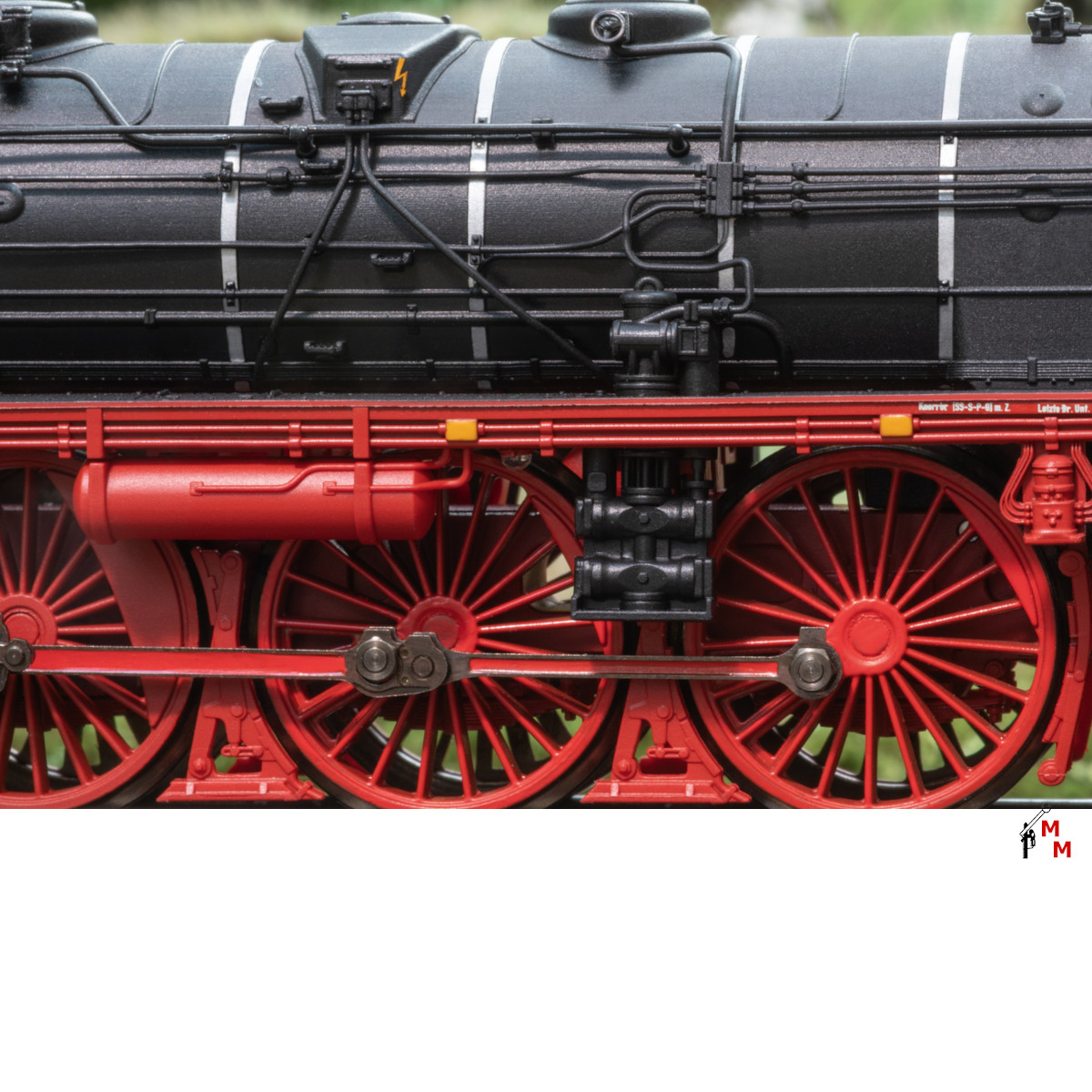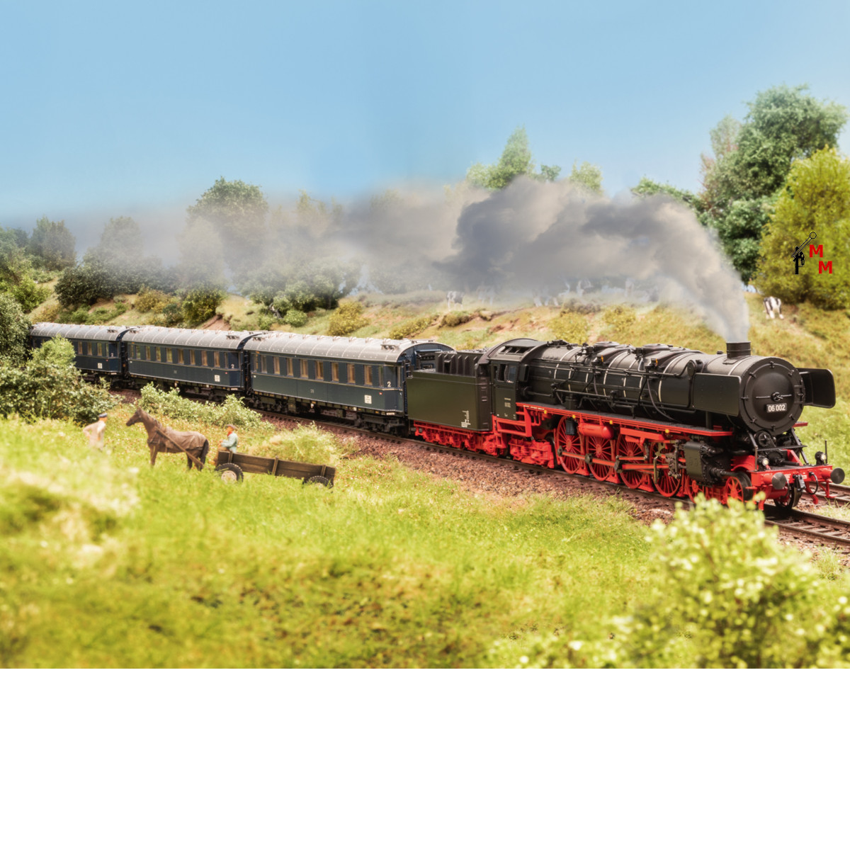 Hierbei handelt es sich um das „Insider-Modell 2026“, einer Schnellzug-Dampflokomotive der Baureihe 06 002 der Deutschen Bundesbahn (DB) in originalgetreuer Umsetzung eines DB-Entwurfs ohne Stromlinienverkleidung. Modell mit Witte-Windleitblechen, silberfarbenen Kesselringen und einseitiger Indusi. Heimatbetriebswerk Hamm. Betriebszustand 1952. Die Dampflokomotive ist mit einem geregelten Hochleistungsantrieb mit Schwungmasse im Kessel. Eine Achsen angetrieben, drei Achsen über Kuppelstange angetrieben. Haftreifen. Modell weiterhin mit einem mfx+-Decoder für umfangreiche Sound- und Sonderfunktionen ausgestattet. Auch lassen sich im Spielbetrieb verschiedene Modi (Halbprofi-, Profi- und Spezialisten-Modus) auslösen. Simulierter Führerstand im Display der Central Station 2 und 3 mit der Möglichkeit der Steuerung des Modells im Führerstand-Modus mittels Touchscreen der Central Station 2 und 3. So können realistische Fahreigenschaften abgebildet werden. Mit entsprechendem digitalem Fahrgerät lassen sich bis zu 29 unterschiedliche Sound- und Sonderfunktionen schalten, wie beispielsweise das Dampflok-Fahrgeräusch, Spitzensignal, Lokpfiff, Rauchsatz mit geschwindigkeitsabhängigem, dynamischem Rauchausstoß. Schaffnerpfiff, Feuerbüchsenflackern und weitere typische Dampflokgeräusche zuschalten. Fahrtrichtungsabhängig wechselndes Zweilicht-Spitzensignal konventionell in Betrieb, digital schaltbar. Beleuchtung mit wartungsfreien warmweißen Leuchtdioden (LED). Modell mit Pufferspeicher. Kurzkupplung mit Kinematik zwischen Lok und Tender. Am Tender Kinematik geführte Kurzkupplung mit NEM-Schacht. Befahrbarer Mindestradius R2 437,5 mm. Kolbenstangenschutzrohre und Bremsschläuche liegen bei. Länge über Puffer 31,0 cm. Hinweis: Ab Werk für Mindestradius R 2 (437,5 mm) spezifiziert; bei vorsichtiger/ reduzierter Fahrweise ist der Betrieb auf R 1 (ca. 360 mm) möglich. Mit den Wagen-Set 42528 lässt sich eine Zuggarnitur zusammenstellen. Bei dieser kompletten Neukonstruktion handelt es sich um das Insider-Modell, das nur für Club-Mitglieder als Einmalserie gefertigt wird und um Neuware mit 5 Jahren Herstellergarantie. Achtung! Nur für Erwachsene geeignet.