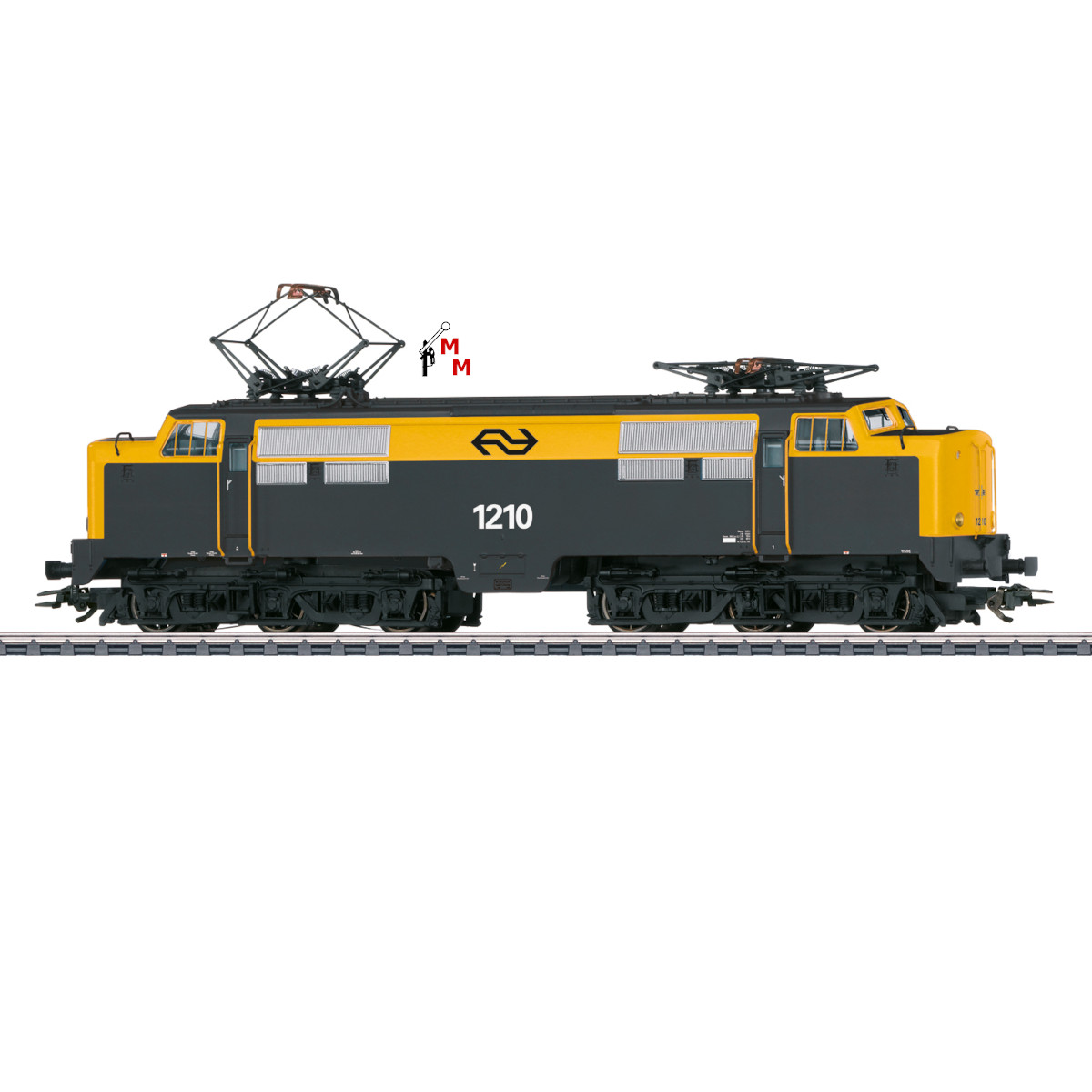 Hierbei handelt es sich um eine 4-achsige Elektrolokomotive in Metallausführung der Reihe 1200 der Niederländischen Eisenbahnen (NS) in grau-gelber Farbgebung mit grauem Dach. Dach mit zwei feinen Scherenstromabnehmern. Graues NS-Logo. Betriebsnummer 1210. Betriebszustand Mitte ab 1972 der Epoche IV. Das Modell ist mit einem geregelten Hochleistungsantrieb mit Schwungmasse (4 Achsen über Kardan angetrieben) und einem mfx+-Decoder für umfangreiche Sound- und Sonderfunktionen ausgestattet. Auch lassen sich im Spielbetrieb verschiedene Modi (Halbprofi-, Profi- und Spezialisten-Modus) auslösen. Simulierter Führerstand im Display der Central Station 2 und 3 mit der Möglichkeit der Steuerung des Modells im Führerstand-Modus mittels Touchscreen der Central Station 2 und 3. So können realistische Fahreigenschaften abgebildet werden. Mit entsprechendem digitalem Fahrgerät lassen sich insgesamt bis zu 19 Sound-, Licht- und Sonderfunktionen wie das Spitzensignal, E-Lok-Fahrgeräusch, Signalhorn, Schaffnerpfiff, Führerstandsseitenfenster öffnen, Panto-Geräusch und vieles mehr zuschalten. Fahrtrichtungsabhängig wechselndes Dreilicht-Spitzensignal und zwei rote Schlusslichter konventionell in Betrieb, digital schaltbar. Rangierlicht schaltbar. Beleuchtung mit wartungsfreien warmweißen, gelben und roten Leuchtdioden (LED). Mit Pufferspeicher. Separat angesetzte Griffstangen aus Metall. Bremsleitungen liegen als separat ansteckbare Teile bei. LüP.: ca. 20,8 cm. Es handelt sich um eine Einmalserie für 2026 und um Neuware mit 2 Jahren Herstellergarantie. Achtung! Nur für Erwachsene geeignet.