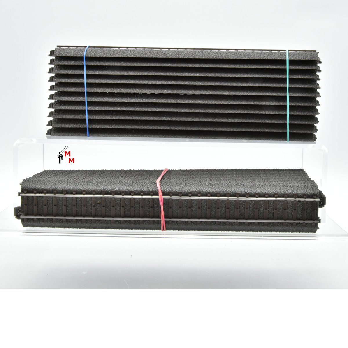 Hierbei handelt es sich um das gerade C-Gleis mit einer Länge von 236,1 mm. Das entspricht der Länge der schlanken Weiche und der Kreuzung. Die C-Gleise befinden sich in sehr gutem Erhaltungszustand, nur wenig bespielt und ohne OVP. Bei einigen Gleisstücken ist die Bohrung für die Befestigungsschraube schon durchstoßen. Zur Beachtung: Bei älteren C-Gleisen kann der Kunststoff spröde werden, so dass ein ungünstiger Sturz eine Beschädigung (Abbrechen am Gleisbett) herbeiführen kann. Die Funktionalität bleibt jedoch erhalten. Es handelt sich hier um gebrauchte Ware, es gilt die verkürzte Gewährleistung von einem Jahr. Preis für 10 Gleise. Abgabe nur im 10er Pack in OVP. Achtung! Nur für Erwachsene geeignet.