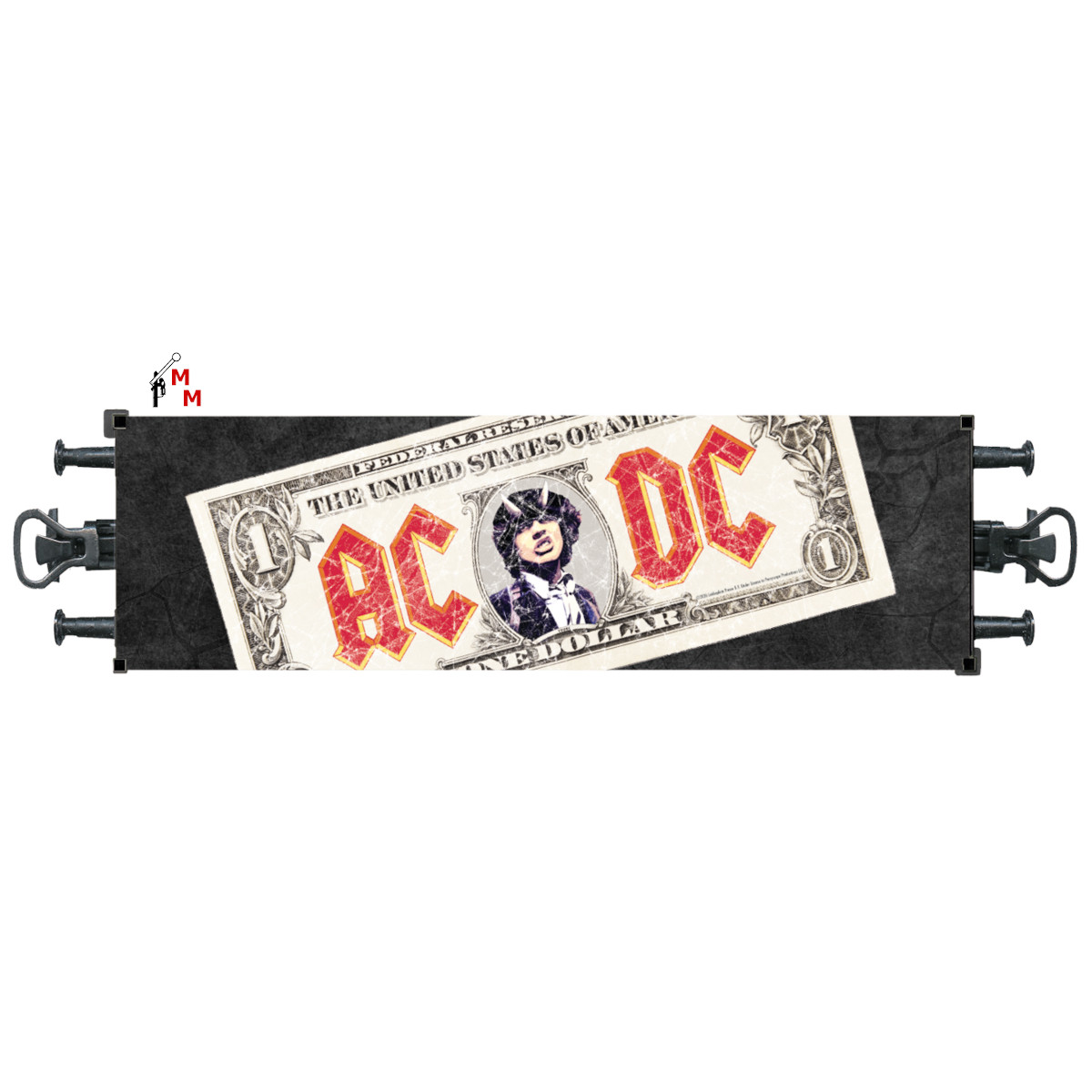 Hierbei handelt es sich um den 2-achsigen Containerwagen in Kunststoffausführung in der bekannten Banknoten-Gestaltung zur AC/DC Single Moneytalks aus dem Jahre 1990 in überwiegend schwarzer Grundfarbgebung. Längsseiten des Containers mit der farbeigen Aufschrift „AC/DC“ und „Money Talks“. Auf der Oberseite des Containers die farbige Abbildung der Money talks Banknote. Relex-Kupplungen. Wagenlänge 11,5 cm. Ein Nachdruck der Money-Talks-Banknote liegt dem Wagen bei. Dieser Wagen aus dem Start-up Sortiment ergänzt alle bisher erschienen Wagen zum Thema AC/DC. Es handelt es sich um eine Einmalserie für 2026 und um Neuware mit 2 Jahren Herstellergarantie. Achtung! Nur für Erwachsene geeignet.