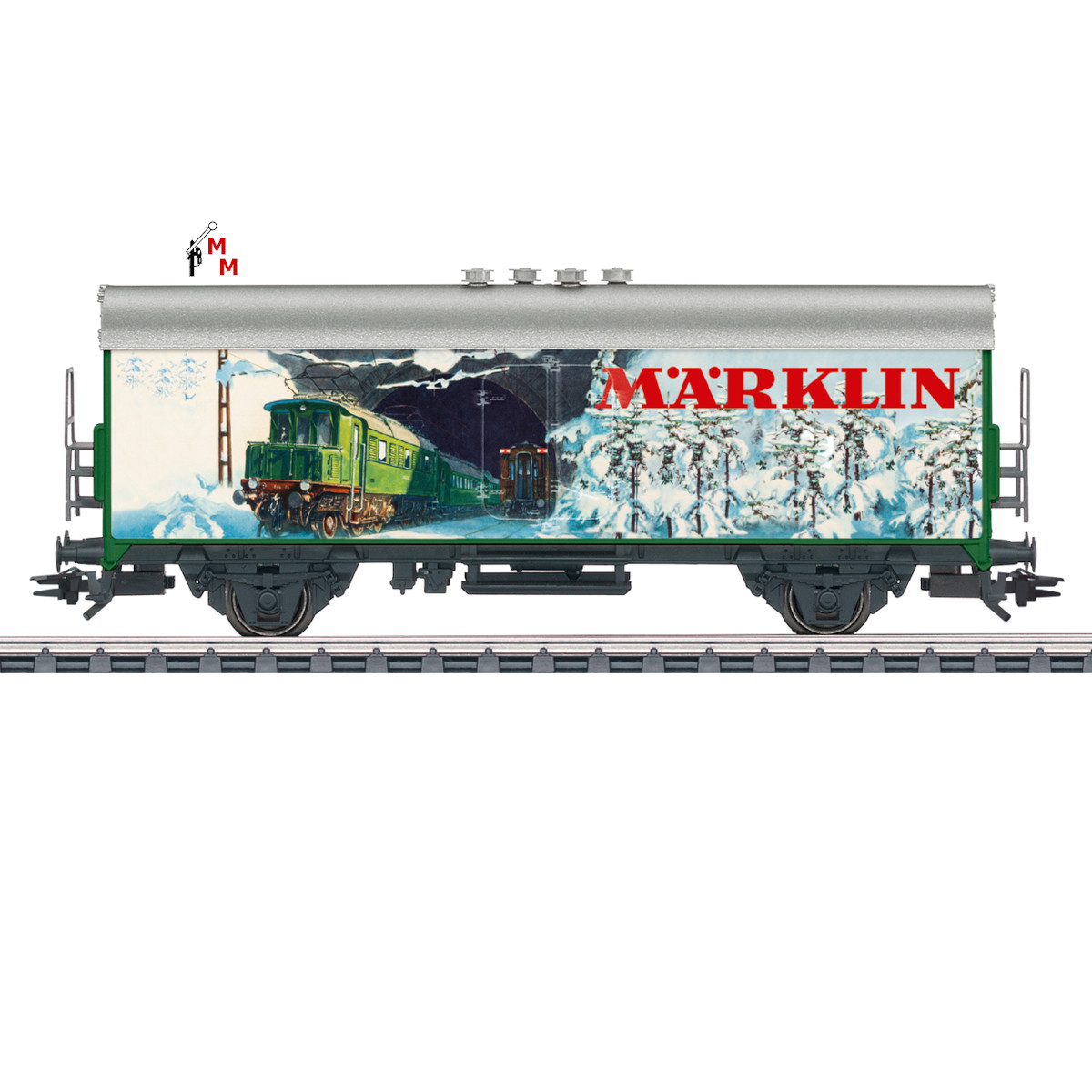 Hierbei handelt es sich um den Sonderwagen mit dem Titelbild des Märklin-Katalogs aus dem Jahre 1937 als Kühlwagen in Kunststoffausführung der Bauart Ibopqs in farbiger Gestaltung mit silberfarbenem Dach. Dach mit eingesetzten Dachlüftern sowie mit angesetzten Aufstiegen an den Stirnseiten. Das diesen Wagen zierende Gemälde an den Längsseiten zeigt das Deutsche Krokodil und einen roten Personenwagen mit Schlusslichter daneben einen verschneiten Winterwald. Der Druck des Motives ist in einem spezifischen 3D-Druckverfahren ausgeführt, der sich erhaben darstellt und fühlbar ist. Länge über Puffer 13,4 cm. Dieser besondere Katalog-Wagen wird als Einmalserie nur 2026 angeboten und setzt die begonnene Serie der Katalogwagen fort. Es handelt sich um Neuware mit 2 Jahren Herstellergarantie. Achtung! Nur für Erwachsene geeignet.